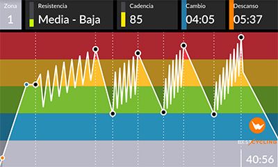 Entrenamiento interválico con el que trabajaremos la resistencia a alta intensidad, pedaleando al ritmo de la música.