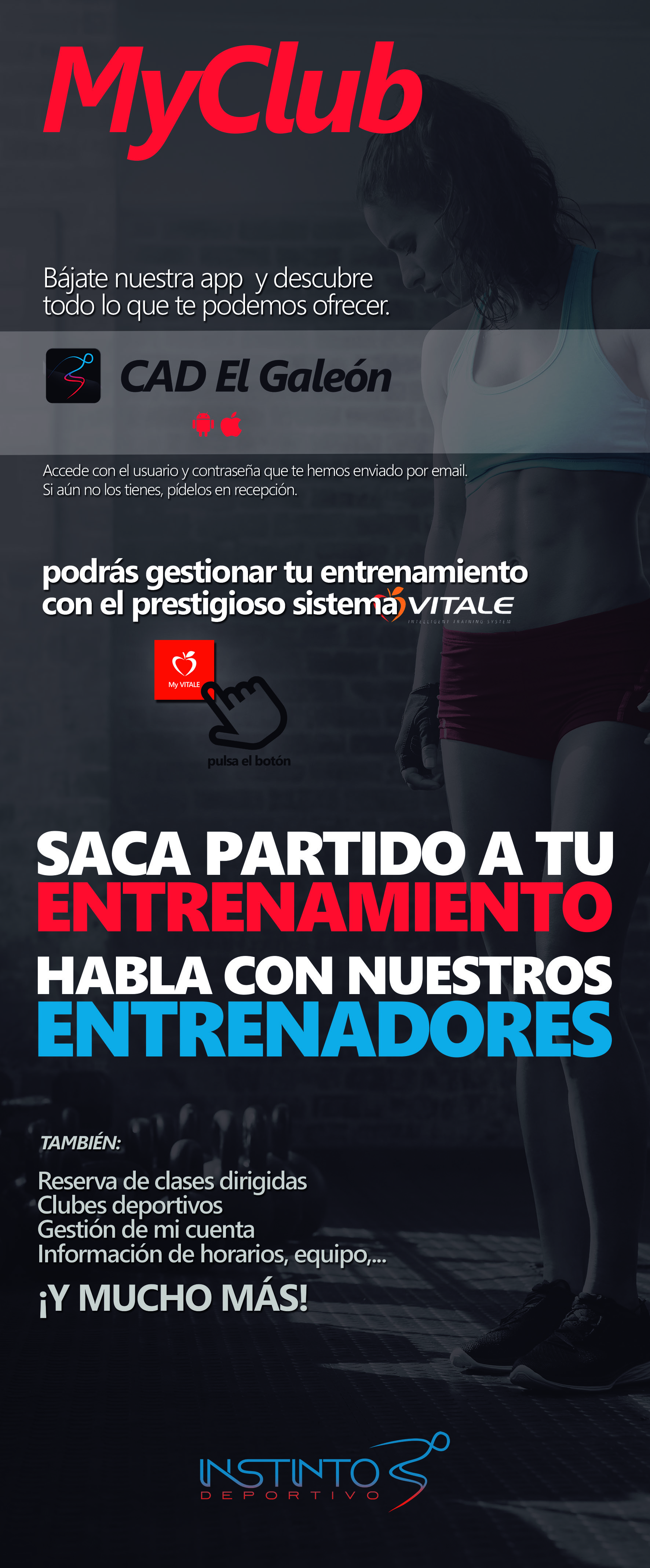Bájate nuestra App CAD EL GALEÓN y podrás gestionar tu entrenamiento con el prestigioso sistema Vitale.