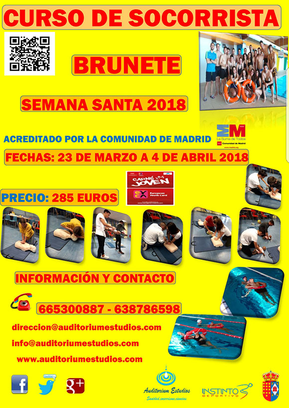 Curso de Socorrista en Brunete del 23 de marzo al 4 de abril. Acreditado por la Comunidad de Madrid.