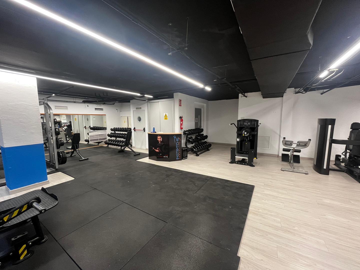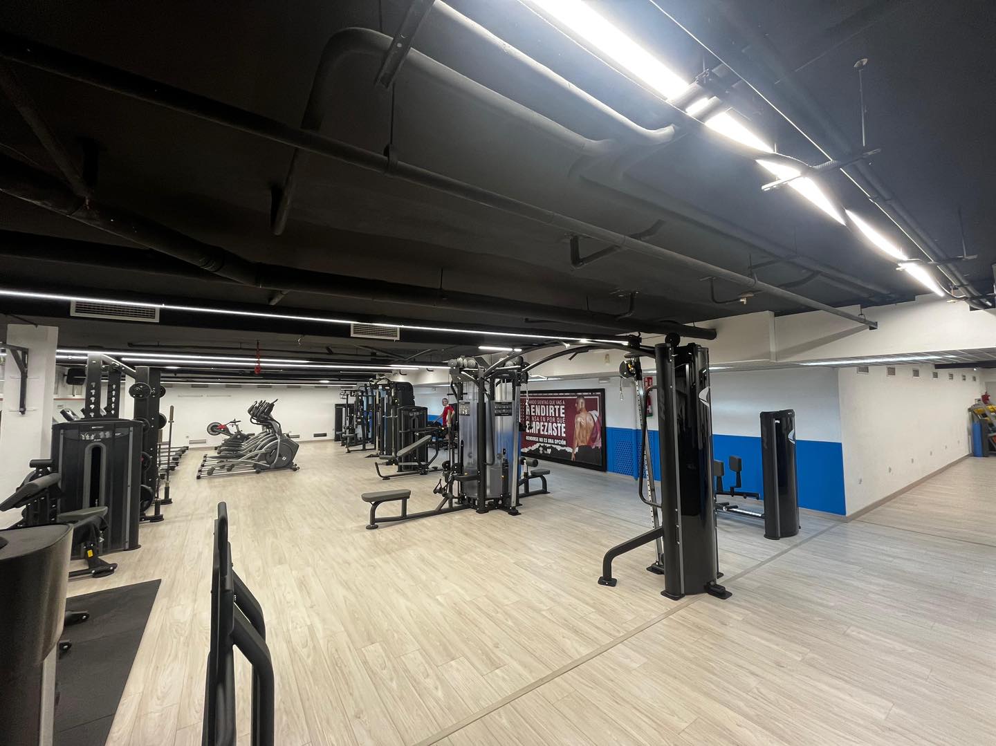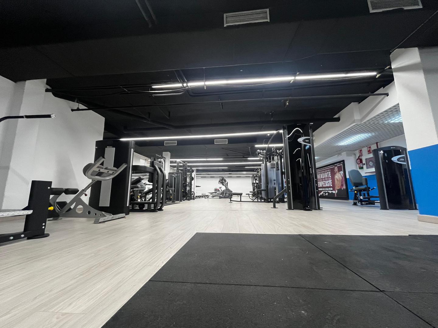 Espacio compuesto de una zona de entrenamiento cardiovascular con bicis, elípticas y cintas; una zona de peso libre y otra zona de máquinas fitness.